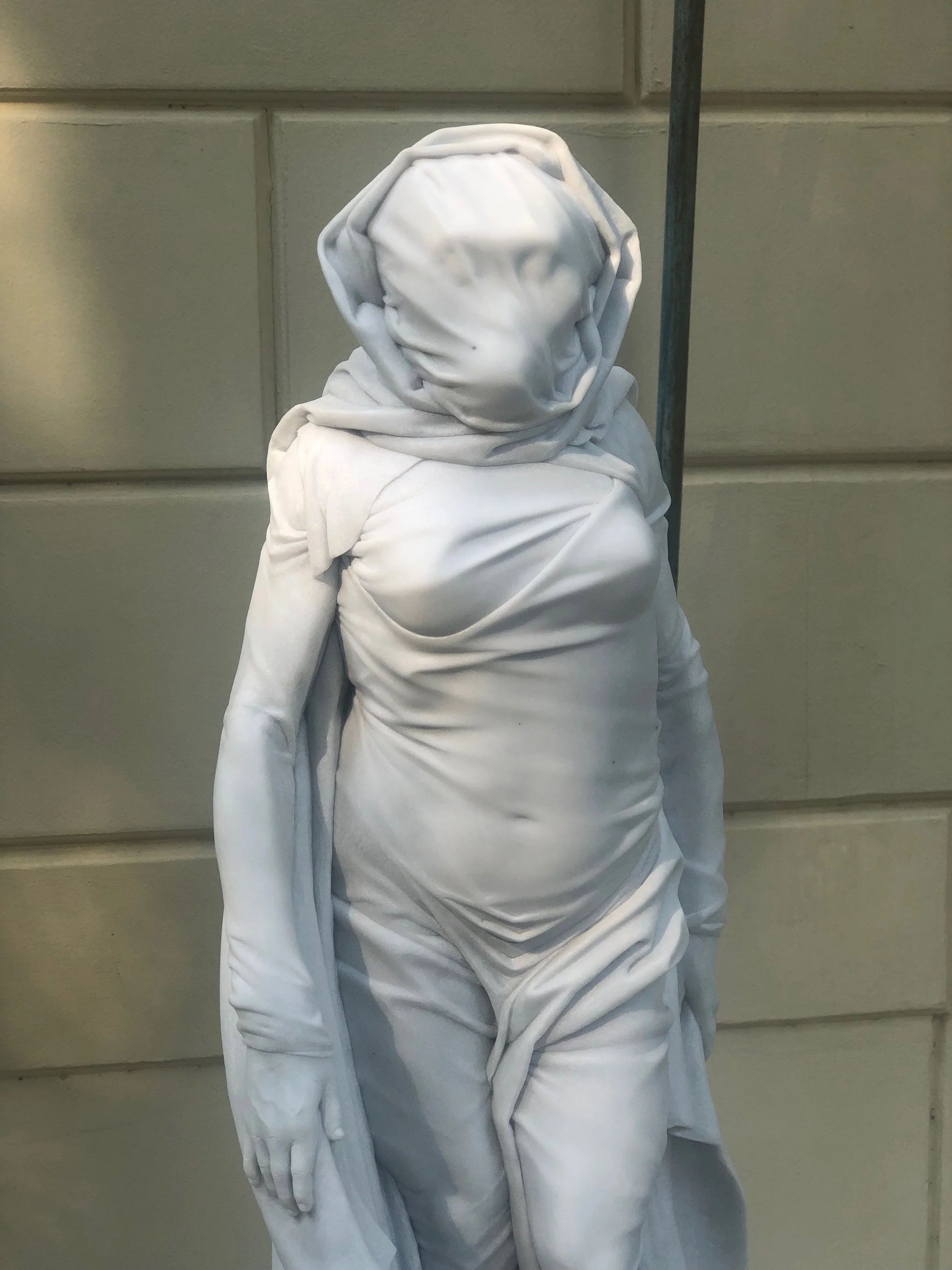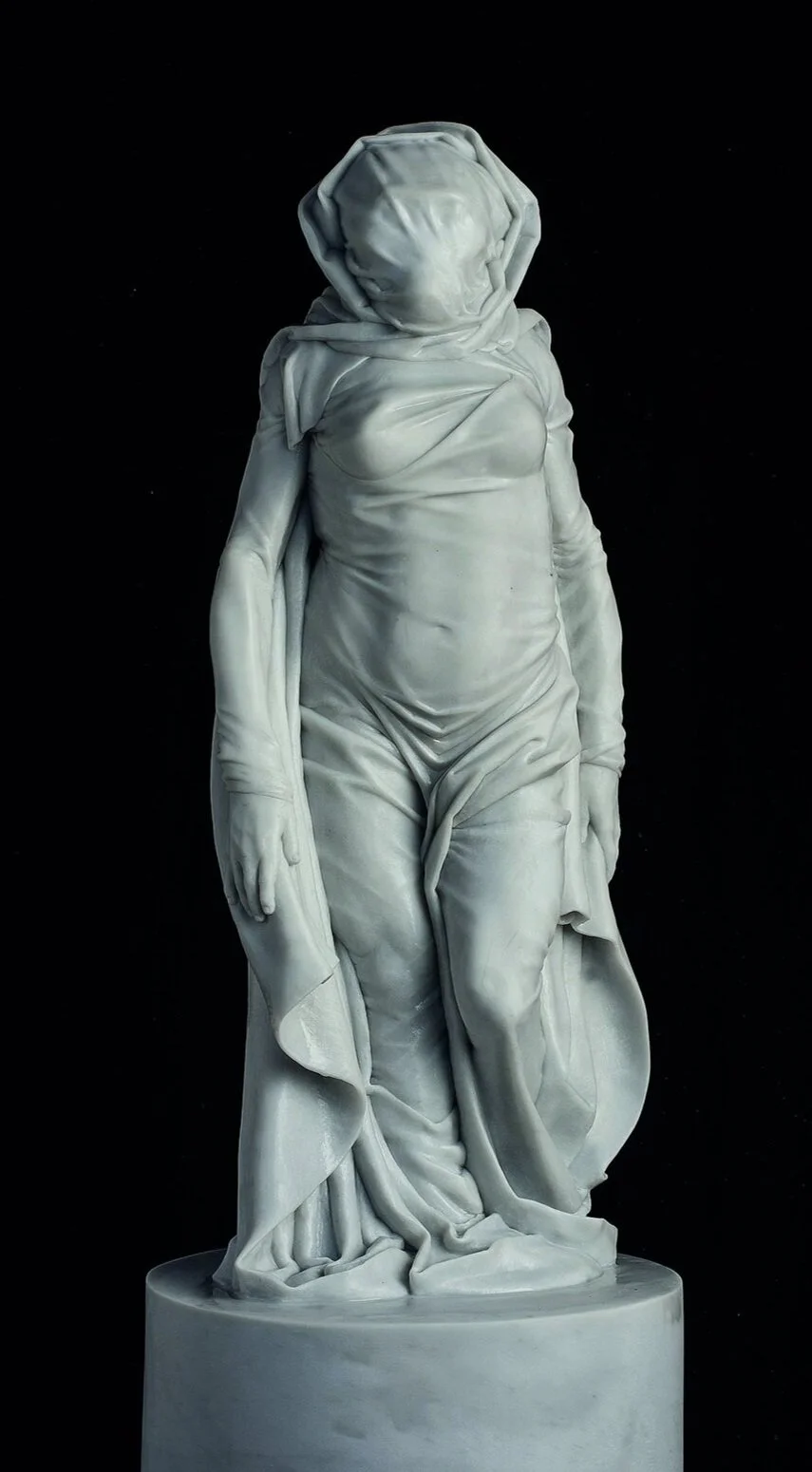 This was the first piece where Gabriel used drapery as an analogue for unknown aspects of his subjects. It was inspired by the fact that after finishing the sculpture of Lucy, he no longer felt confident that her appearance was any more accurate than mere artist conjecture and so began designing future studies. Thus, Lucia, the ghost or unknown embodiment of who Lucy may have been emerged as an artistic reprieve from the scientific work.